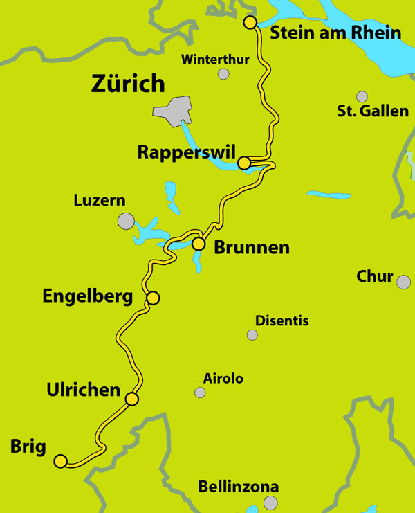 Kommen Sie mit uns auf eine unvergessliche Mountain-Bike Tour mit allem Komfort. Die 19. NUTRIXXION Mountain-Rally 2014 ist eine Alpenüberquerung für Kenner und Geniesser. Vom 17. bis 23. August 2014 führt uns die Tour auf einer komplett neuen und sehr attraktiven Route in 5 Etappen von Stein-am-Rhein SH nach Brig ins Wallis. In spannenden und garantiert erlebnisreichen Tagesabschnitten biken wir mit Ihnen vom Startort Stein-am-Rhein SH via die Etappenorte Rapperswil SG, Brunnen SZ, Engelberg OW und Ulrichen im Goms bis nach Brig. Während diesen 5 unvergesslichen Tagen kommen wir an bekannten und für viele von Ihnen aber auch neuen Bikemonumenten, Sehenswürdigkeiten und Höhepunkten vorbei. Hier nur einige Stichworte: Rhein, Seerücken, Frauenfeld, Murg, Hinterthurgau, Hörnligebiet, Tössscheidi, March, Oberer Zürichsee, Sihlsee, Einsiedeln, Grosser und Kleiner Mythen, Vierwaldstättersee, Rigi, Klewenalp, Engelberg, Jochpass, Engstlenalp, Haslital, Grimselpass, Goms, Binntal, Saflischpass, usw. Bei der Streckenwahl haben unsere Scouts und lokalen Informanten wieder vor allem aussichtsreiche und attraktive Trails, unbekannte Pässe und Übergänge, sowie viele schöne Wanderwege und Forststrassen gesucht und auch gefunden. Weitere Infos finden Sie unter www.mountain-rally.ch